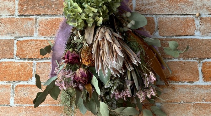 今回はワイルドフラワーでボリュームたっぷりのスワッグづくりを一緒に楽しみましょう。